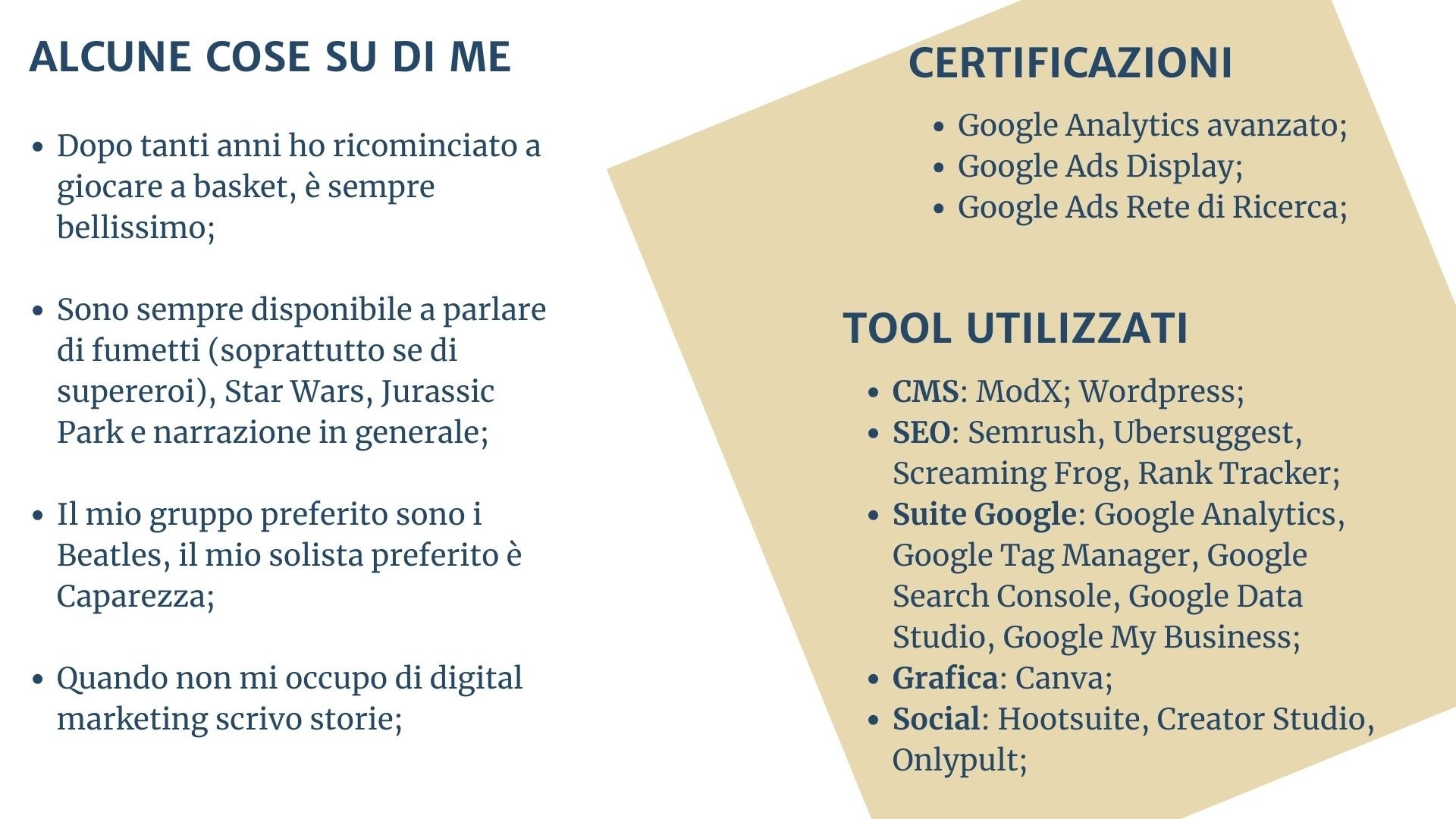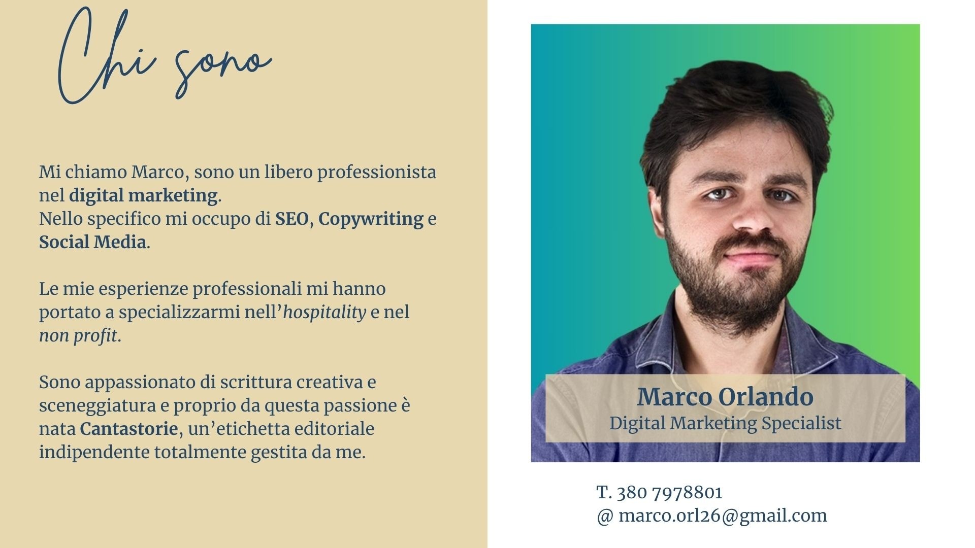 Mi chiamo Marco, sono un libero professionista nel digital marketing.